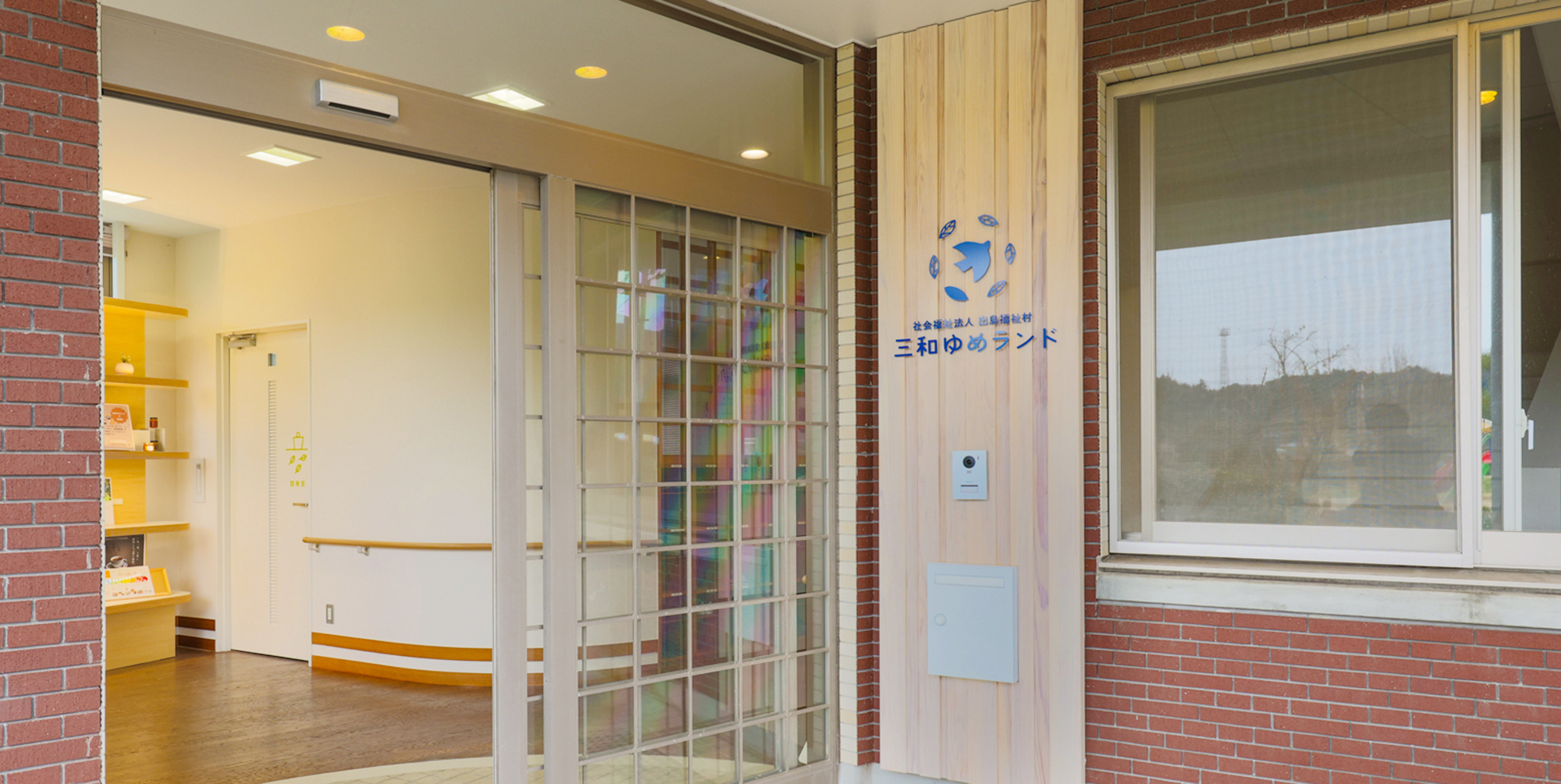 壁面の中で飛ぶ鳥は、三和ゆめランドの利用者さんを象徴しています。