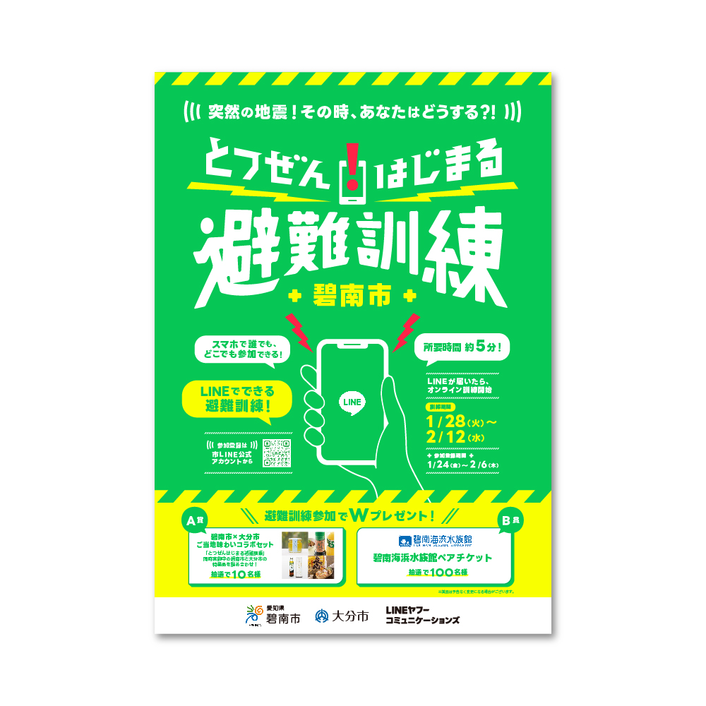 LINEで完結する「とつぜん!はじまる避難訓練」のためのコミュニケーションデザイン。