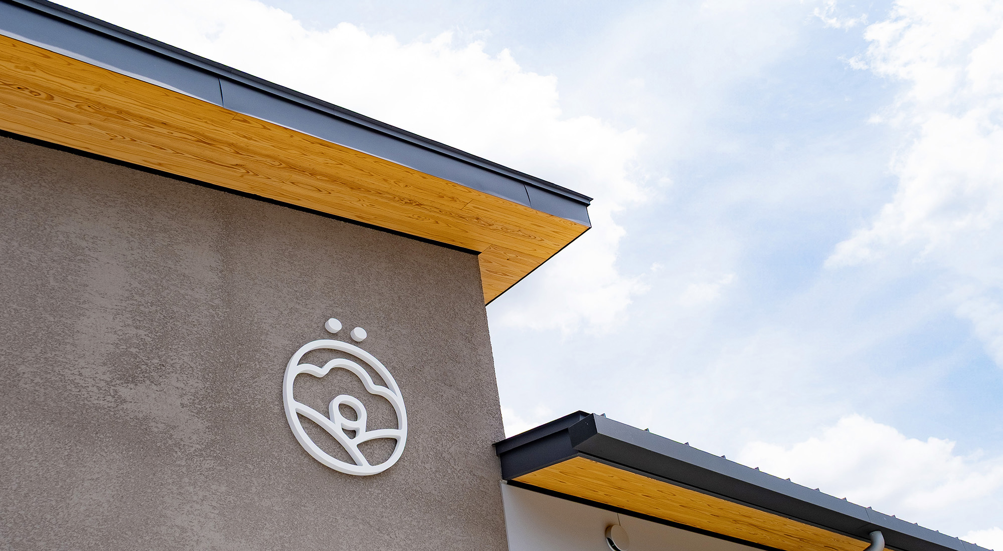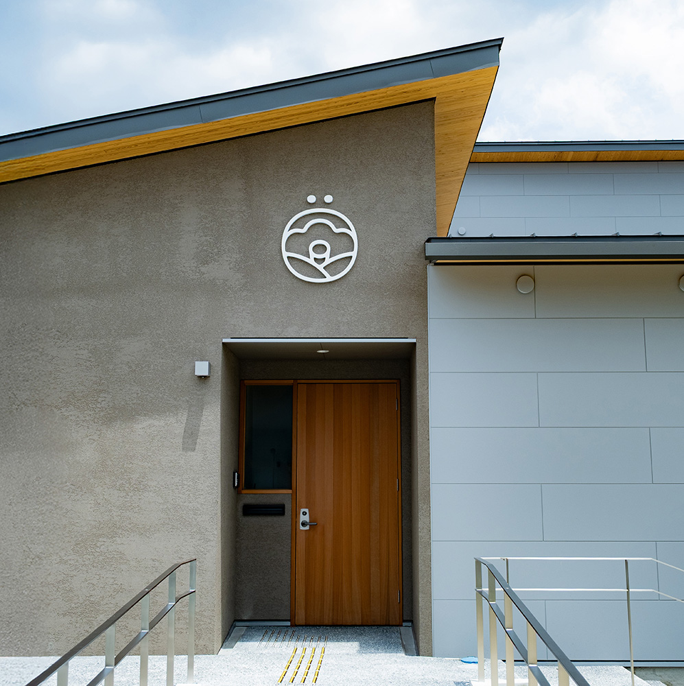その柔らかく包み込むようなかたちは、利用者にとっての「見守り」や「温かさ」を象徴し、施設の優しさを視覚化しています。