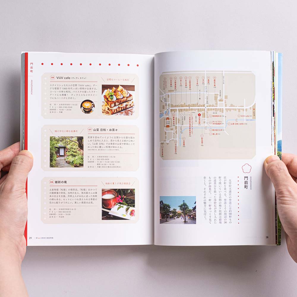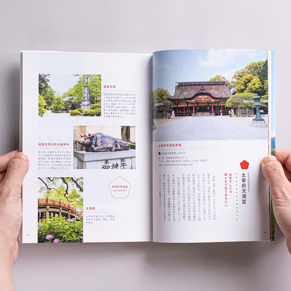 太宰府のまちのここまで詳しく紹介した本はないのではというぐらい情報が多く、初めて太宰府を訪れる方、何度も訪れている方にオススメの一冊です。太宰府は年に一度は訪れる町なので、デザインを制作している中で私も太宰府の新発見があり、さらに太宰府の町が好きになりました。
